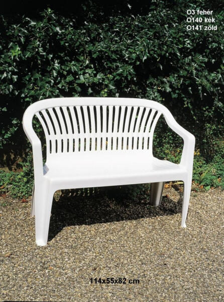 FIGYELEM! A termék szállítás szempontjából túlméretes, ezért a termékre eső szállítási költség eltér a rendszer által számítottól! A szállítási díjról kérjük egyeztessen telefonon vagy e-mailben! Több termék vagy több darab egyidejű rendelése esetén, az egy termékre jutó szállítási díj, kedvezőbb! Két személyes pad, kényelmes ülőalkalmatosság! Stabil, erős, magas háttámlával! Karos kerti pad a kezünknek is kényelmet biztosít! Önmagában is megvásárolható, de asztal mellé is kiválóan alkalmas mindazok részére, akik nem szeretik az asztal mellett a széket! Tehát asztallal együtt garnitúrában is megvásárolható! Garnitúrában kedvelt megoldás vásárlóink körében, hogy egy asztalhoz 2 db kerti padot vásárolnak, és két műanyag kerti széket az asztal két rövidebb oldalához! Ajánljuk vendéglátó helyeknek, akár nyaralókba kertbe, de nagyobb erkélyekre is ideális lehet. Tisztítása langyos vízzel, puha ronggyal történjen, a fehér színű kerti padnál lehetőleg minél gyakrabban, hogy a szürke por ne fakítsa el egy idő után a szép fehér színt! Olasz termék. Nevét a Dívákról kapta. Súly: 6,4 kg Rakásolható termék Ülésmagasság: 43 cm Egyéb Díva padok: Diva műanyag kerti pad zöld O141 Diva műanyag kerti pad fehér O3